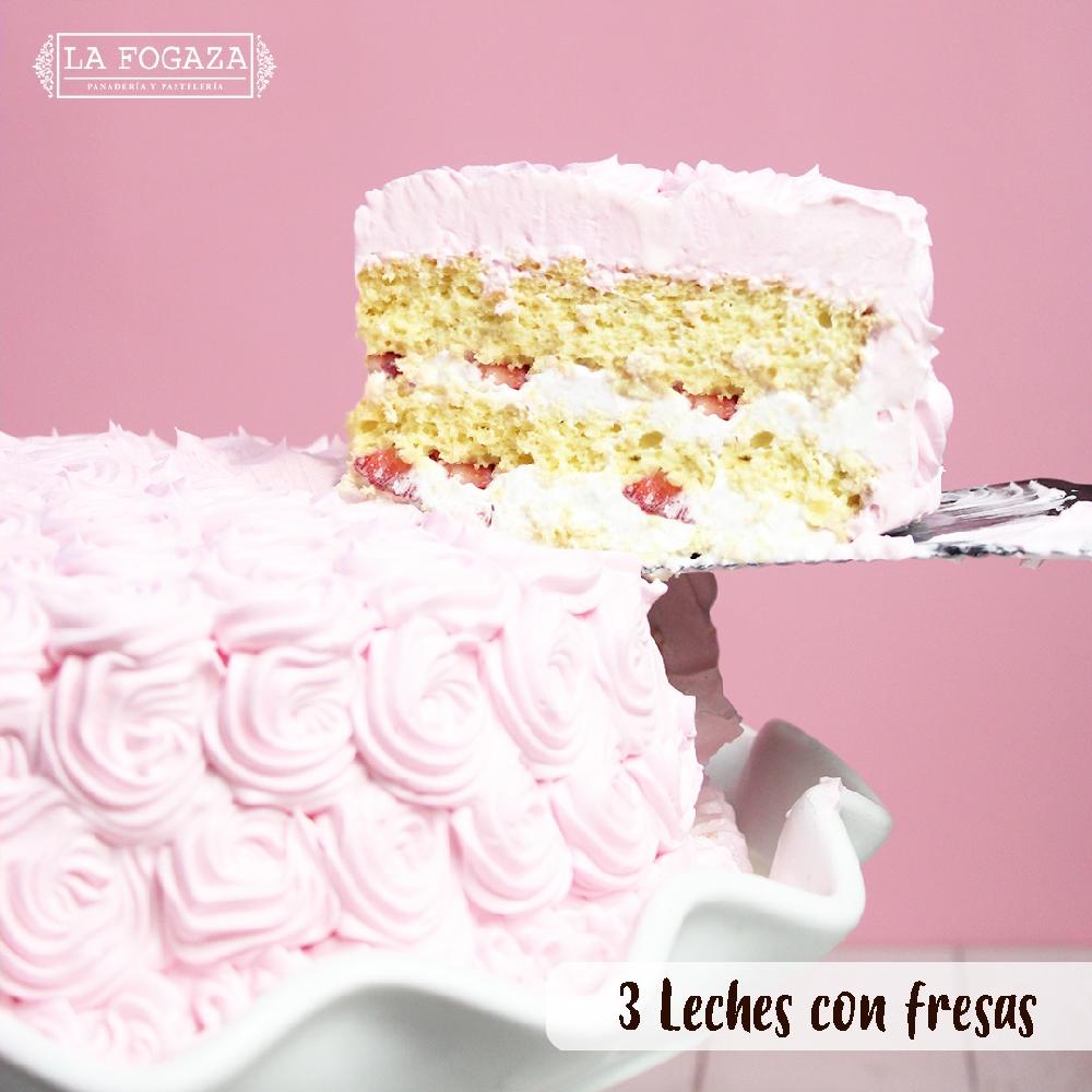Pan de vainilla bañado en 3 leches, relleno de mermelada de fresa con crema batida, cubierto de ganache de chocolate y fresas. De no haber en existencia, favor de realizar su pedido con 1 día de anticipación.