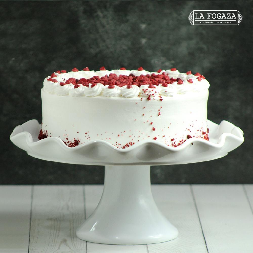 Pan de Red Velvet (base de chocolate), relleno de crema de queso, cubierto de crema batida y chispas de chocolate. De no haber en existencia, favor de realizar su pedido con 2 día de anticipación.